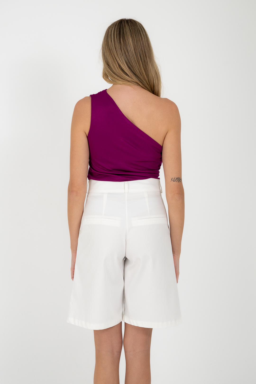 Βερμούδα με καθαρή γραμμή και άνετη εφαρμογή, σε μήκος πάνω από το γόνατο. Ίσια γραμμή που εφαρμόζει ομοιόμορφα στο σώμα προσφέροντας κομψό και ισορροπημένο αποτέλεσμα.