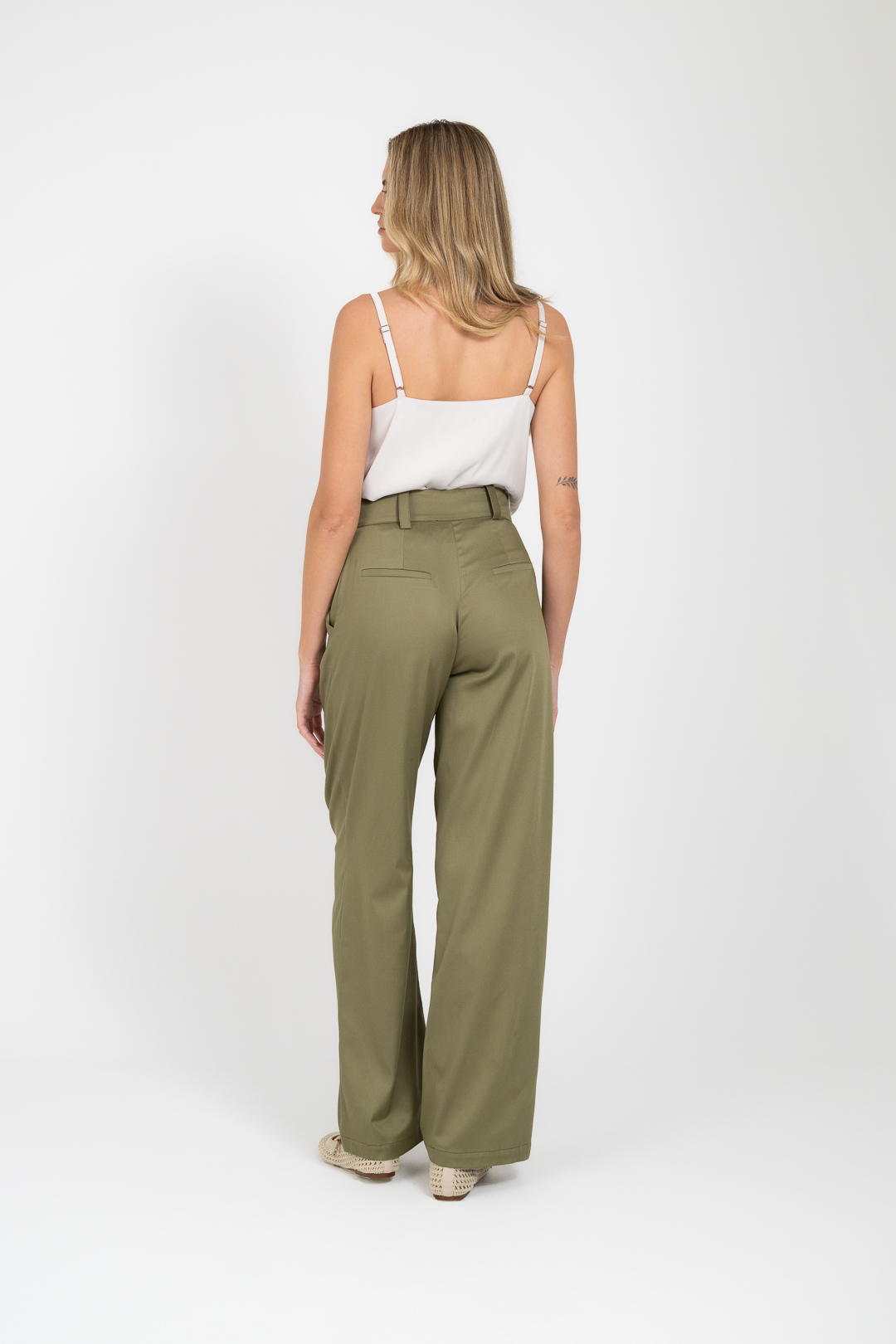 Ψηλόμεσο παντελόνι με πιέτες και ρευστή γραμμή. Ήπια εφαρμογή που προσφέρει άνεση και φυσική κίνηση.