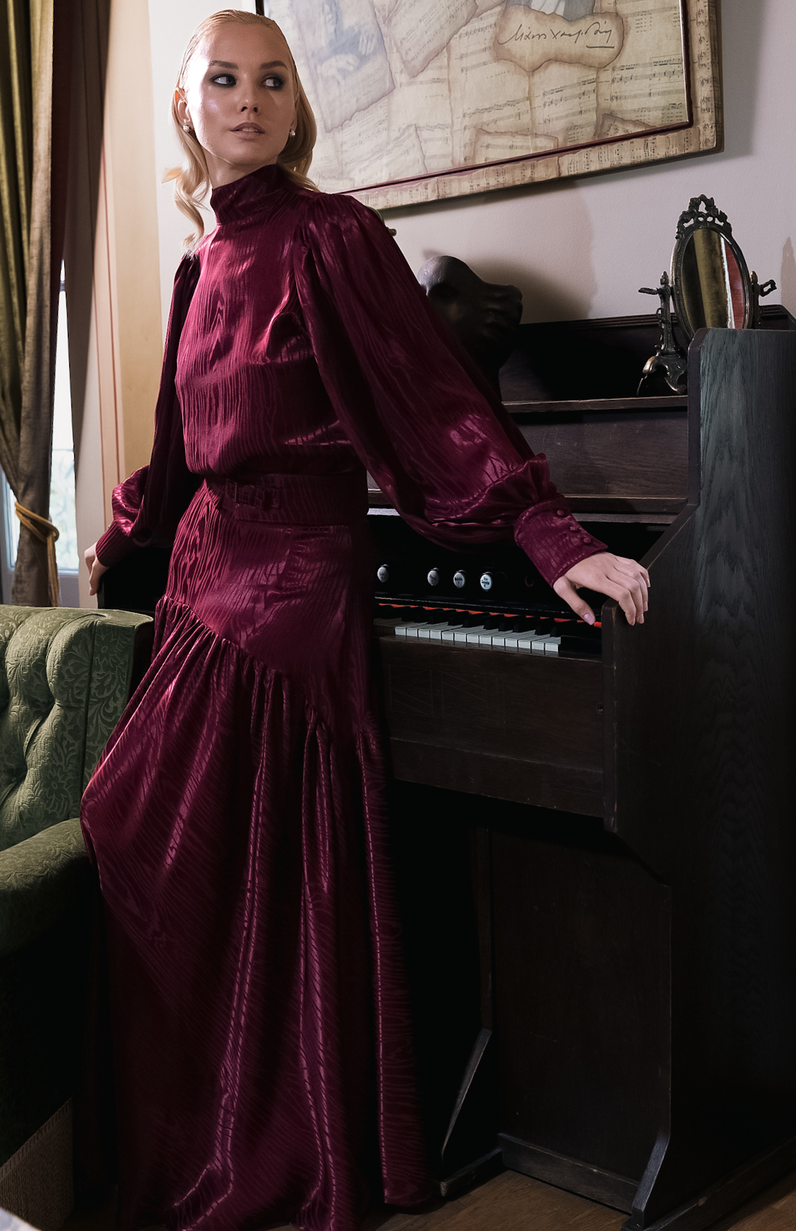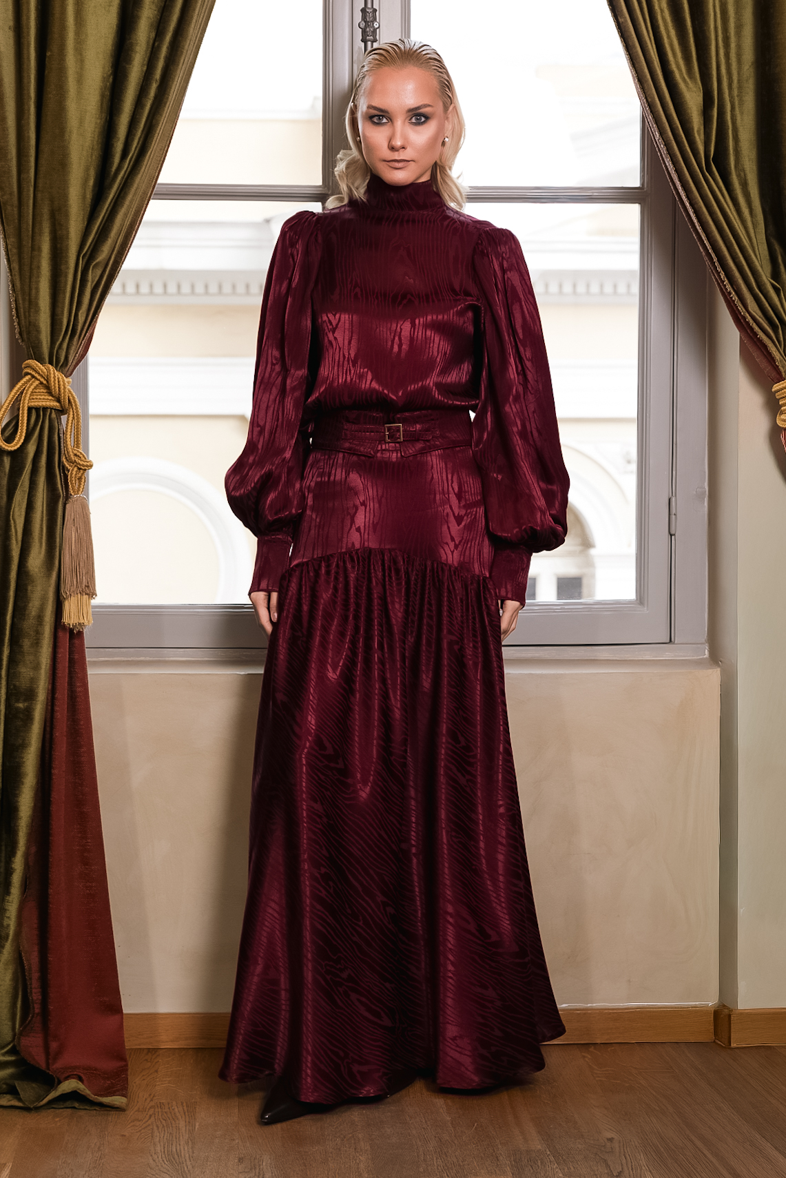 Μακριά φούστα από satin crepe jacquard με υφαντή υφή και σούρες χαμηλά στους γοφούς που προσθέτουν φυσική κίνηση και όγκο.