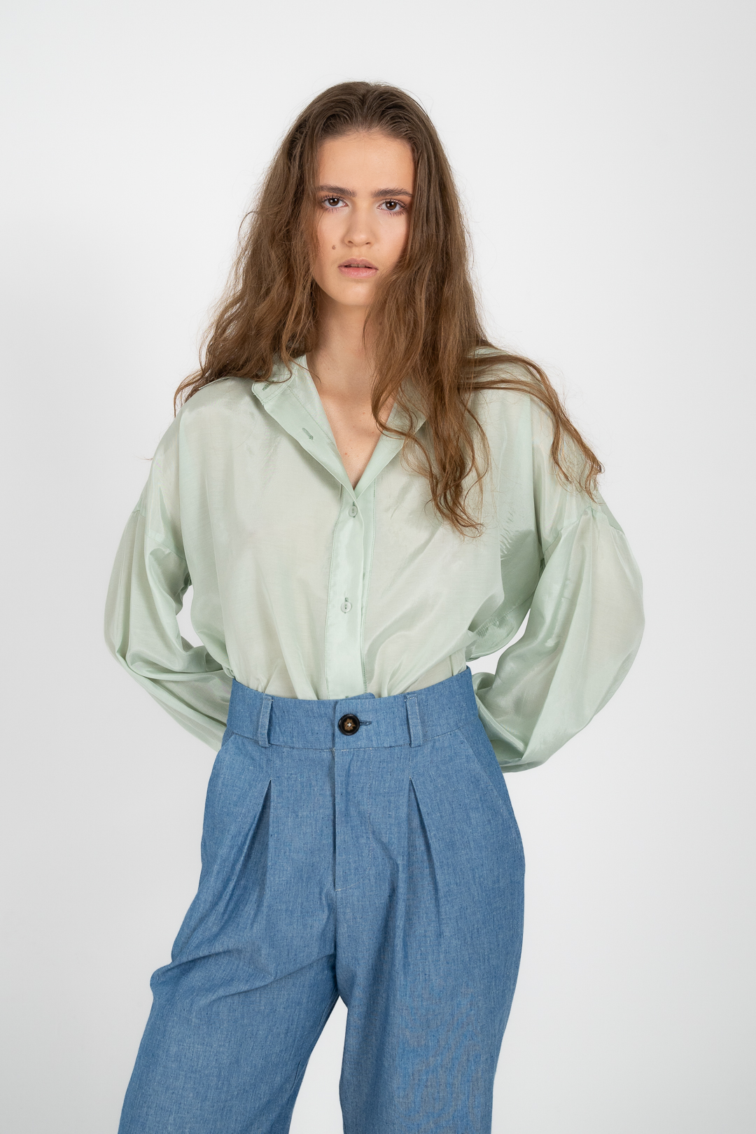 Ψηλόμεσο παντελόνι με πιέτες και καθαρή γραμμή. Το 100% βαμβακερό denim προσφέρει φυσική αίσθηση και άνετη εφαρμογή, ιδανική για καθημερινό ντύσιμο.